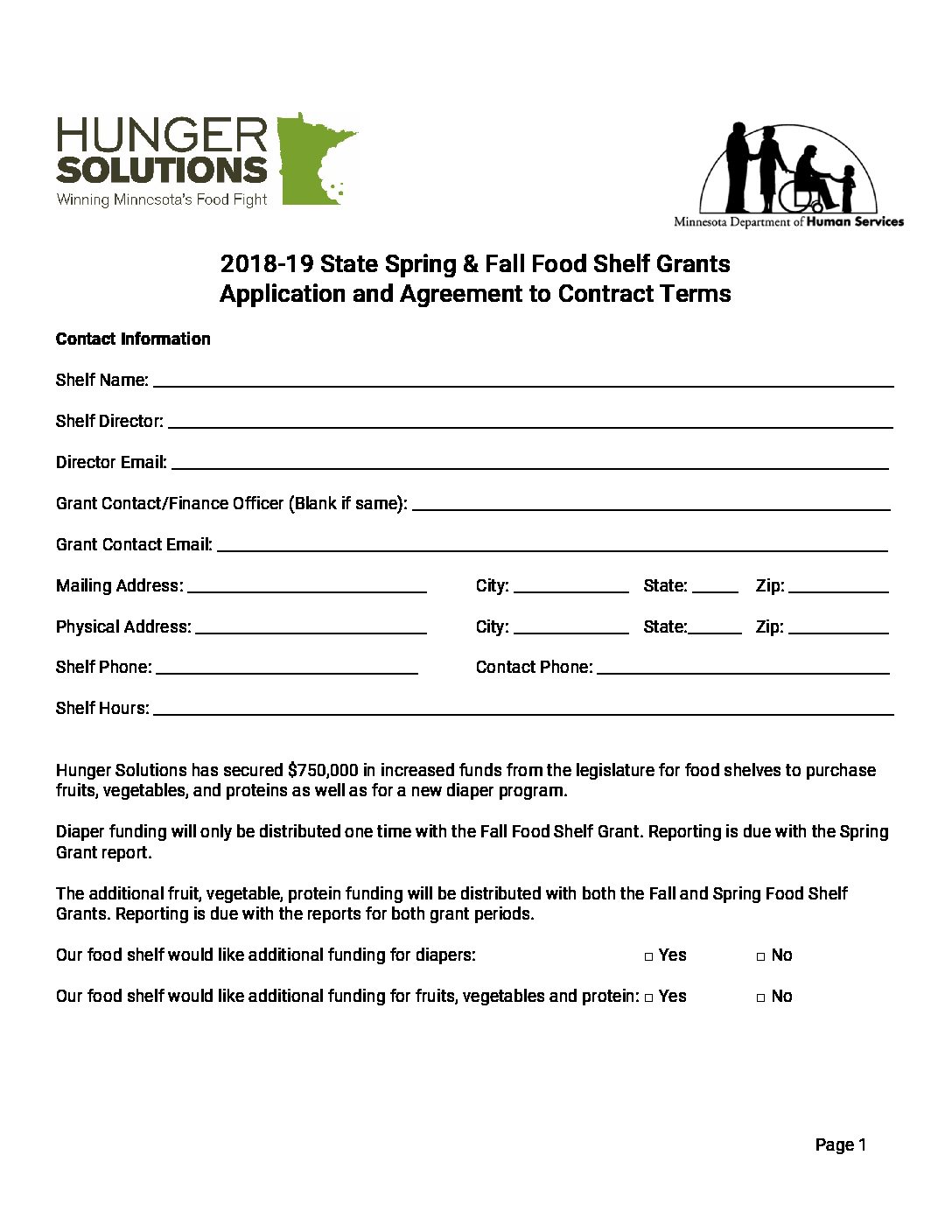 State Food Shelf Grant Application 2018-19 fillable